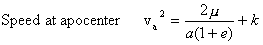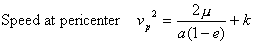 (apocenter) and minimum (pericenter) speeds is found to depend solely on